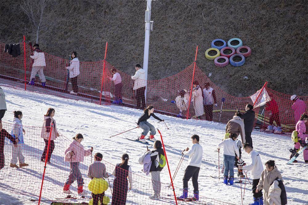 2月19日,河北省邯郸市复兴区二六七二街道东高河村滑雪场,游人如织,市民和游客乐享冰雪运动带来的快乐。聂长青摄